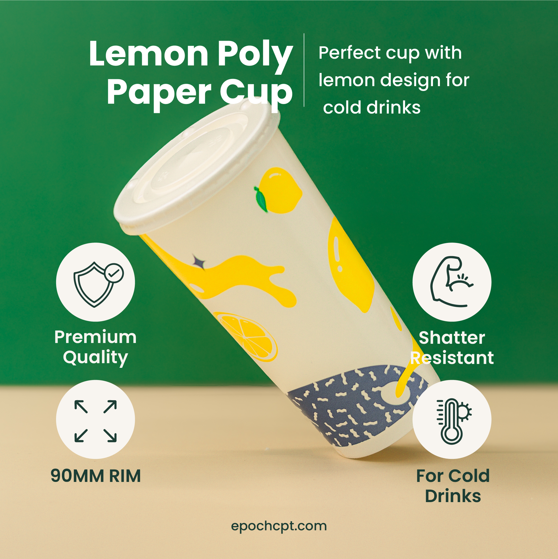 Bright & Refreshing Design – These poly paper lemonade cups feature a vibrant lemon pattern and “Freshly Squeezed Lemonade” print, perfect for concession stands, snack bars, food trucks, and amusement parks. Their eye-catching design instantly attracts customers and enhances your cold drink presentation.