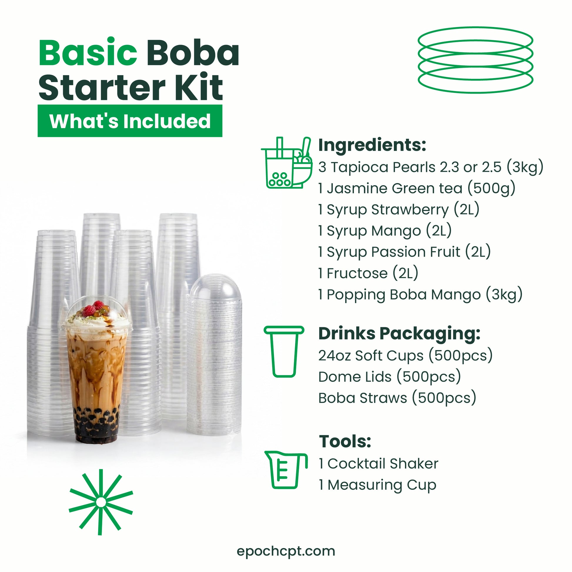 This kit allows entrepreneurs to start their boba business efficiently without training.